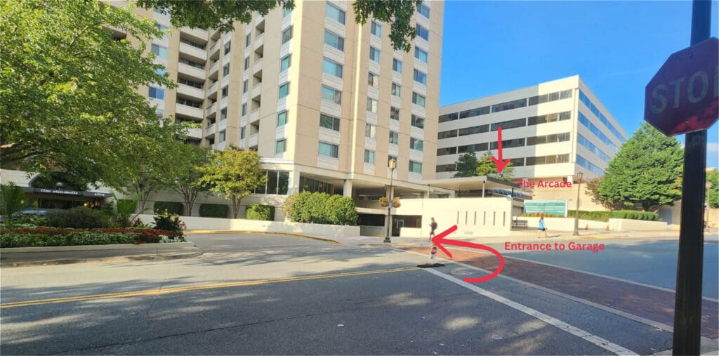 We are a hidden gem located next to the Elizabeth Condominiums (not in) next door down the steps in the Arcade (when facing the condo entrance -we are located on the right side). There is a stop sign.Garage is conveniently located.